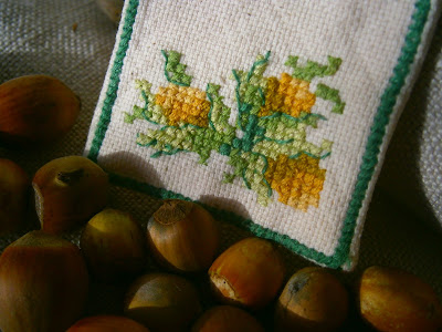 Бирочку вышивала с надеждой на то, что соберу много лещины и смогу ею украсить мешочек или баночку с орешками. Но будет она ждать следующего года.
